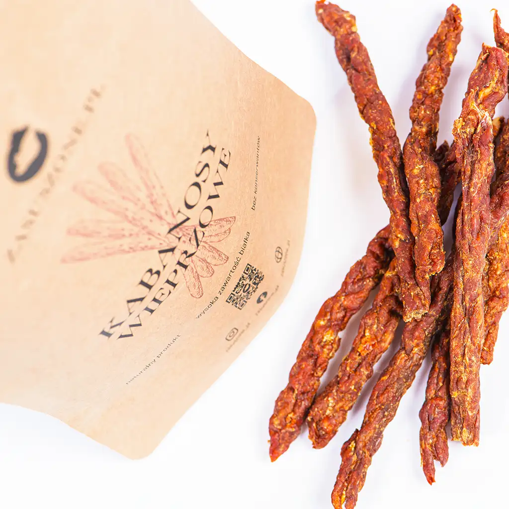 Odkryj wyjątkowy smak naszych kabanosów wieprzowych, dostępnych na Zasuszone.pl. Nasze kabanosy są wykonane z najwyższej jakości wieprzowiny, co czyni je idealną przekąską dla osób aktywnych. Są doskonałe także dla tych, którzy cenią zdrowe i pożywne jedzenie. Przygotowane z dbałością o każdy detal, nasze kabanosy wieprzowe zapewniają niezapomniane doznania smakowe. To smak, który musisz spróbować.